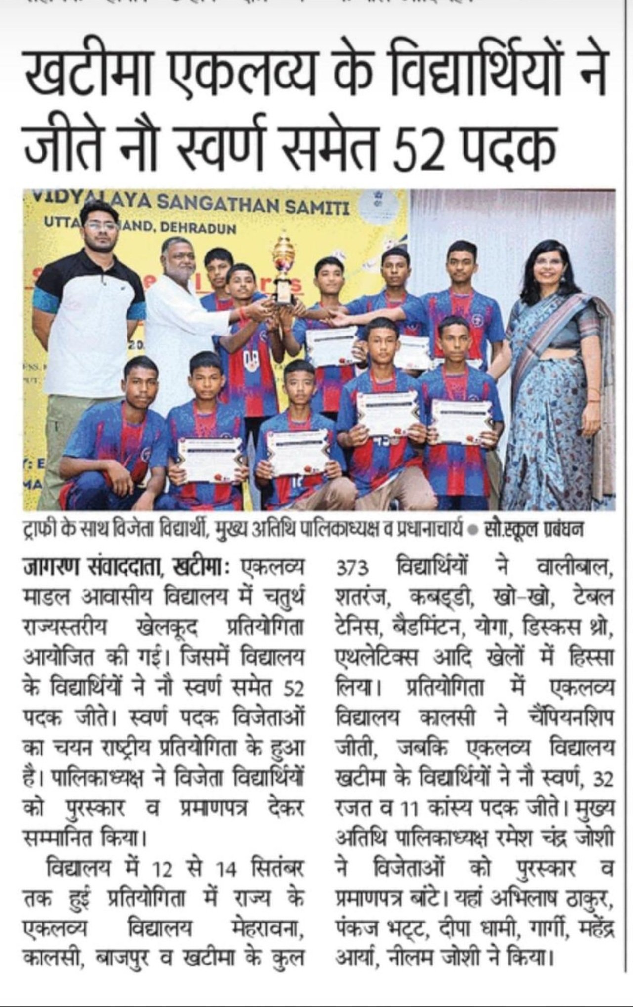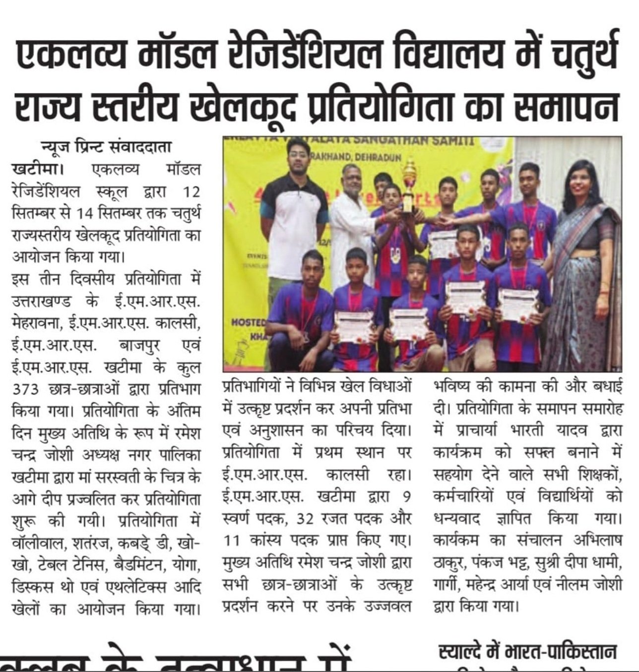 Eklavya Model Residential School (EMRS) khatima was established on 07 November 2020 by government of India with scheme of Residential School specially for tribal children of remote areas.